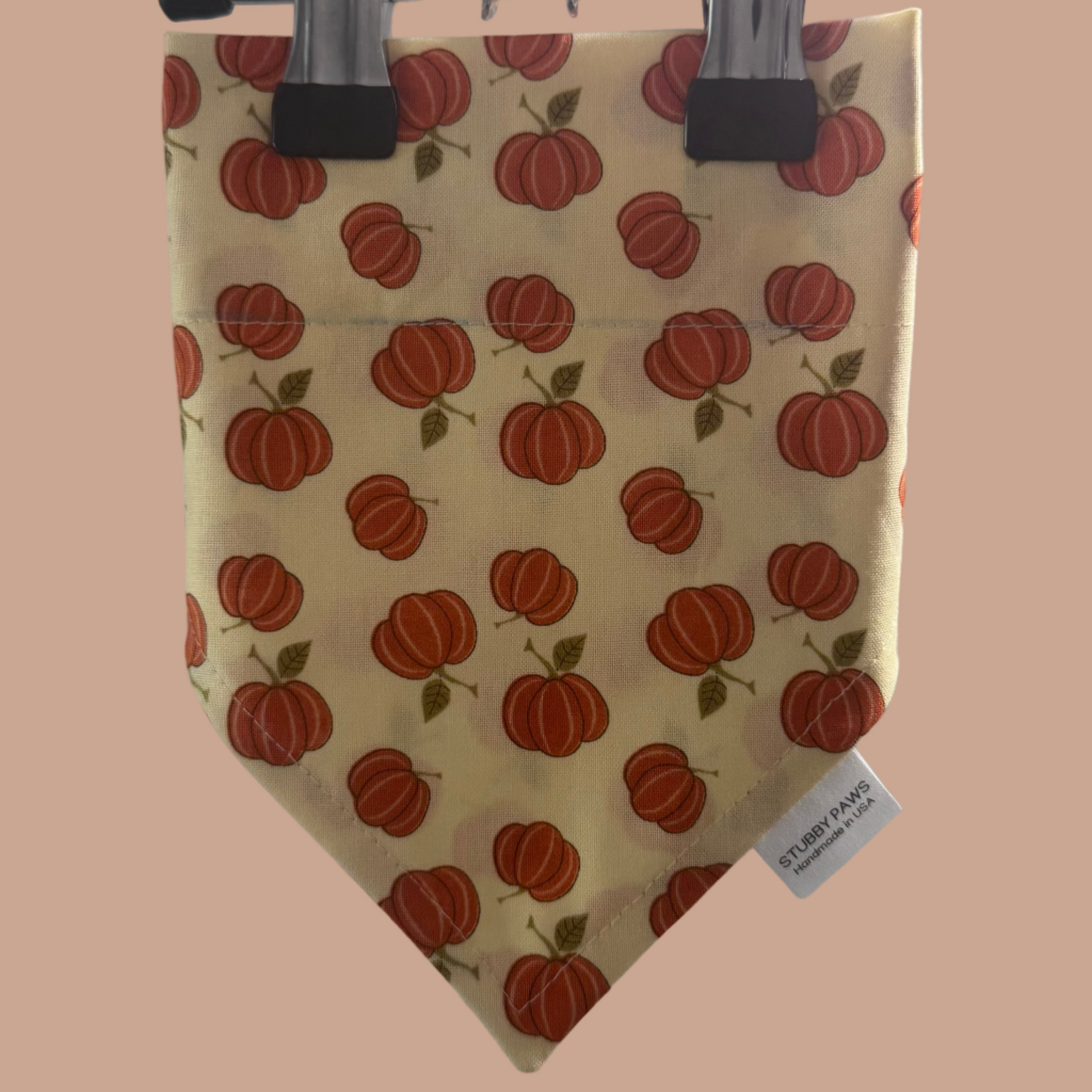 Get your pup fall-ready with this adorable Pumpkin Dog Bandana! Designed to slip easily over your dog’s collar, it stays secure and comfortable—no tying required. Made from 100% soft cotton, it's perfect for crisp autumn walks, Halloween festivities, or cozy pumpkin patch photos.